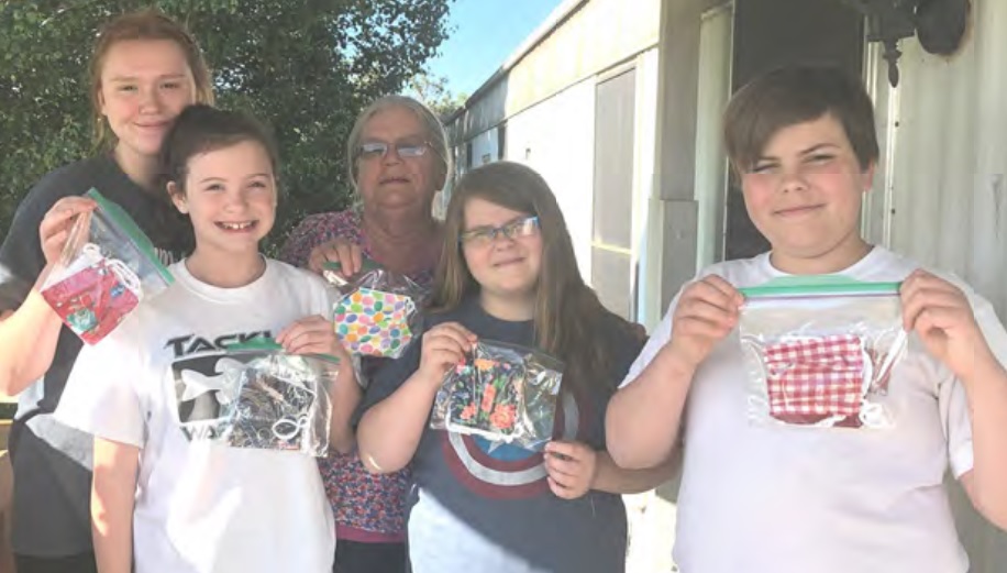 Ann Grant is a friend of Director Tina Johnson and a concerned citizen. So it came as no surprise to Johnson that Grant (third from left) and her four grandchildren would create and donate hand-made cloth masks for the staff and residents of the Dismas Charities Tupelo facility. The 85 masks were presented to Dismas in the name of Grant’s church, Pontotoc Church Family.