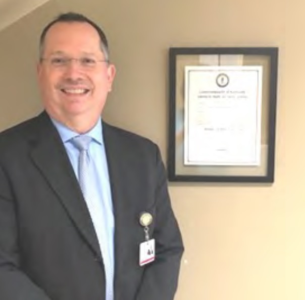In another Dismas Charities first, the St. Ann Substance Abuse Program has been fully licensed as an Outpatient Alcohol and Other Drug Entity (AODE) facility. The licensure was awarded January 28 by Surveyor Will Hendrickson of the Office of the Inspector General (OIG). This approval was the culmination of many months of preparation, compiling documentation of clinical staff qualifications and the facilities compliance with licensing requirements. All of these documentations and requirements are designed to ensure that the facility provides the best quality treatment possible, proving their commitment to the process of recovery and most importantly to the clients they serve. Director Mark Meredith, (above with framed AODE license) is spearheading Dismas’ on-going mission of Healing the Human Spirit in the field of recovery by supervising eight fellow employees from Dismas’ Sub-stance Abuse Programs at St. Ann, Owensboro and Diersen which has since received their AODE certification. This is the first step in the process of obtaining their full Certified Alcohol and Drug Counselor (CADC) credentials, requiring on-going supervision, practical application of counseling principles, and a testing procedure at the end of their supervision. St. Ann will be audited annual for compliance with licensure regulations.