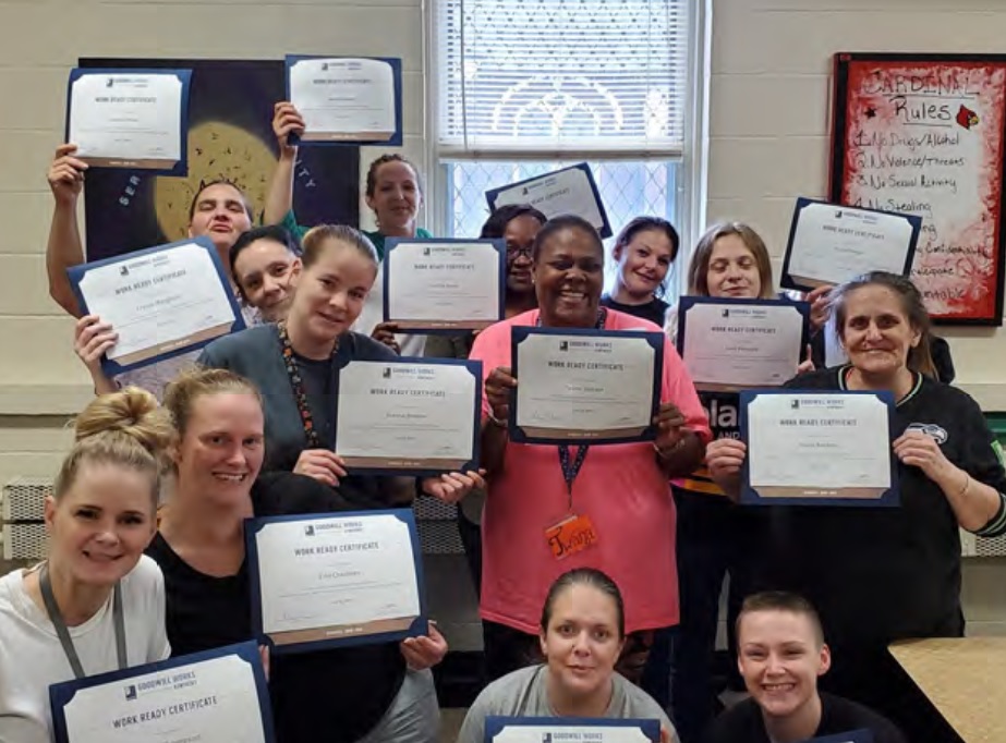 Due to COVID-19, Goodwill Industries got creative and began facilitating their Soft Skills re-entry class via the app, Microsoft Teams. Above are the graduates of their first virtual re-entry class from the Louisville-based Diersen Substance Abuse Program. Virtual training was also held at St. Ann.